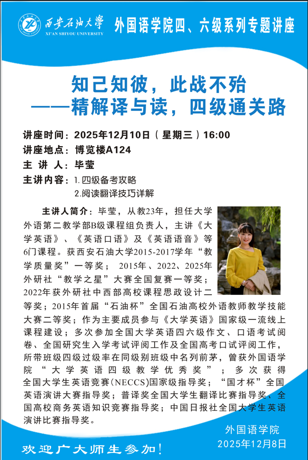 報(bào)告地點(diǎn):鄠邑校區(qū)博覽樓A110智慧大講堂