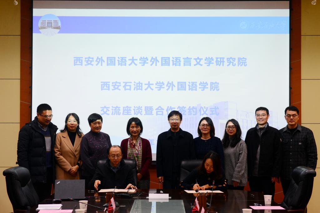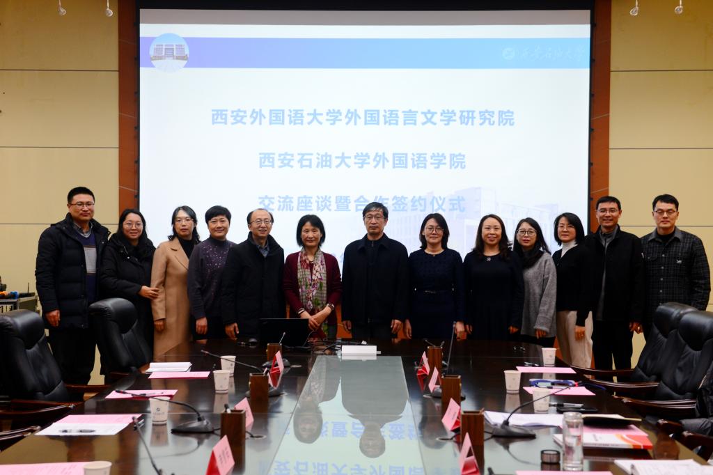 12月14日下午,我校外國語學(xué)院與西安外國語大學(xué)外國語言文學(xué)研究院交流座談會暨合作簽約儀式在雁塔校區(qū)會議中心第一會議室舉行。西安外國語大學(xué)副校長李雪茹,我校副校長蘇文甫出席會議。會議由我校外國語學(xué)院副院長劉輝主持。