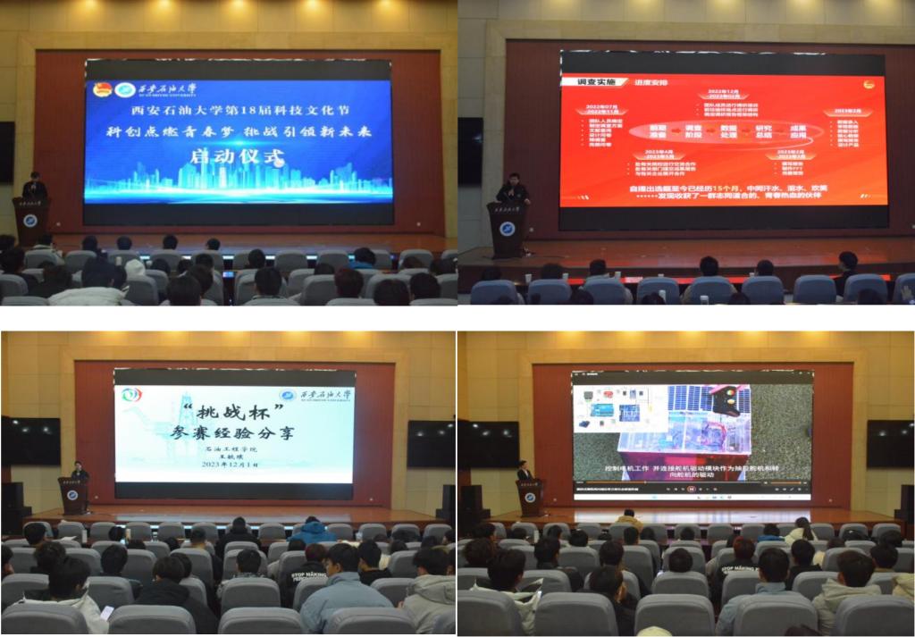 在鄠邑校區(qū)弘石學(xué)術(shù)報(bào)告廳,舉辦了西安石油大學(xué)第十八屆科技文化節(jié)啟動(dòng)儀式和2024年“挑戰(zhàn)杯”大學(xué)生創(chuàng)業(yè)計(jì)劃競(jìng)賽發(fā)布活動(dòng)。活動(dòng)邀請(qǐng)了“挑戰(zhàn)杯”全國大學(xué)生課外學(xué)術(shù)科技作品競(jìng)賽主體賽全國二等獎(jiǎng)《國潮文創(chuàng)正當(dāng)時(shí),賦能“紅色”巧出圈——文創(chuàng)產(chǎn)品的紅色文化傳播調(diào)研》、“黑科技”專項(xiàng)賽恒星級(jí)獎(jiǎng)項(xiàng)《觀往知來新型智能管線安全模擬預(yù)測(cè)系統(tǒng)》、第十四屆“挑戰(zhàn)杯”陜西省大學(xué)生課外學(xué)術(shù)科技作品競(jìng)賽二等獎(jiǎng)《井下醫(yī)生——致密砂巖地層井壁穩(wěn)定智能評(píng)價(jià)與隨鉆預(yù)測(cè)一體化系統(tǒng)》《操控式橫縱兩向鋪壓草方格生態(tài)修復(fù)機(jī)械》等優(yōu)秀獲獎(jiǎng)團(tuán)隊(duì)成員講述作品思路并分享參賽經(jīng)驗(yàn)。