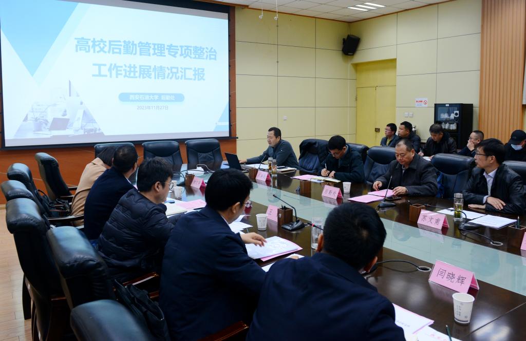 在雁塔校區(qū)會議中心第一會議室,召開了后勤管理專項整治工作督查匯報會。張遠(yuǎn)軍明確了本次專項督查工作的目的、要求和方式。