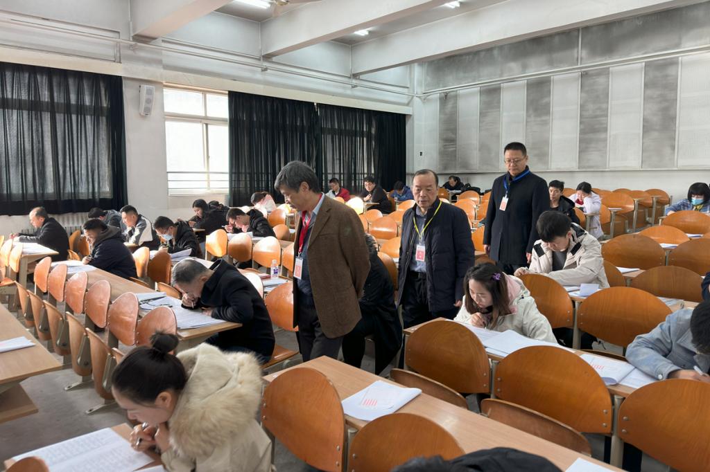 考試期間,楊戰(zhàn)社實(shí)地督導(dǎo)考試工作,并對(duì)各考場(chǎng)進(jìn)行巡視。全體監(jiān)考人員和考務(wù)工作人員認(rèn)真履行職責(zé),認(rèn)真執(zhí)行考試工作規(guī)程和操作規(guī)范;考生嚴(yán)格遵守考場(chǎng)紀(jì)律,誠(chéng)信應(yīng)考;保衛(wèi)處、校醫(yī)院、后勤處等抽調(diào)專(zhuān)門(mén)人員做好服務(wù)工作。在大家的共同努力下,考試工作各項(xiàng)任務(wù)圓滿(mǎn)完成。