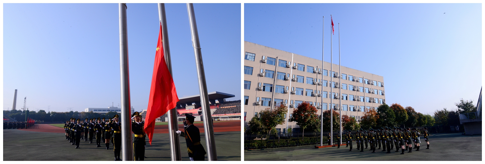 軍訓(xùn)匯報(bào)表演前,學(xué)校舉行了莊嚴(yán)的升國旗儀式。