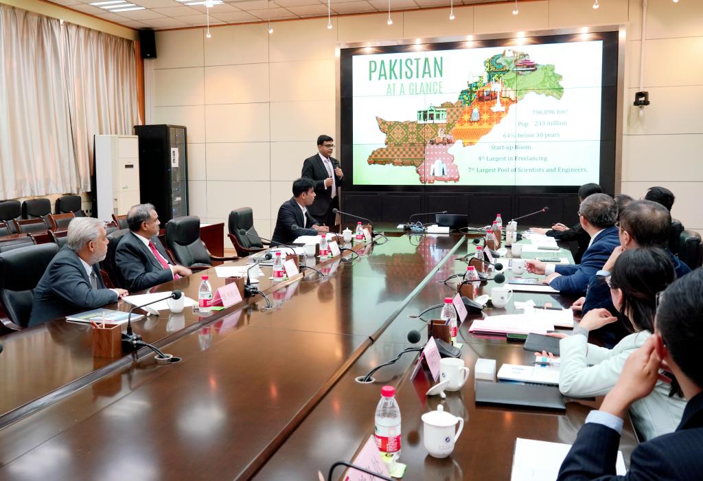常江對布哈里一行來訪表示熱烈歡迎,并簡要介紹了學(xué)校發(fā)展歷史與辦學(xué)特色。他表示,巴基斯坦是習(xí)近平主席提出的共建“一帶一路”倡議最早參與國之一。巴基斯坦國立科技大學(xué)是巴基斯坦頂尖研究型大學(xué)。圍繞“一帶一路”倡議及中巴兩國合作,學(xué)校希望發(fā)揮自身特色,與巴基斯坦國立科技大學(xué)在能源研究、信息技術(shù)、基礎(chǔ)建設(shè)等領(lǐng)域開啟新合作。