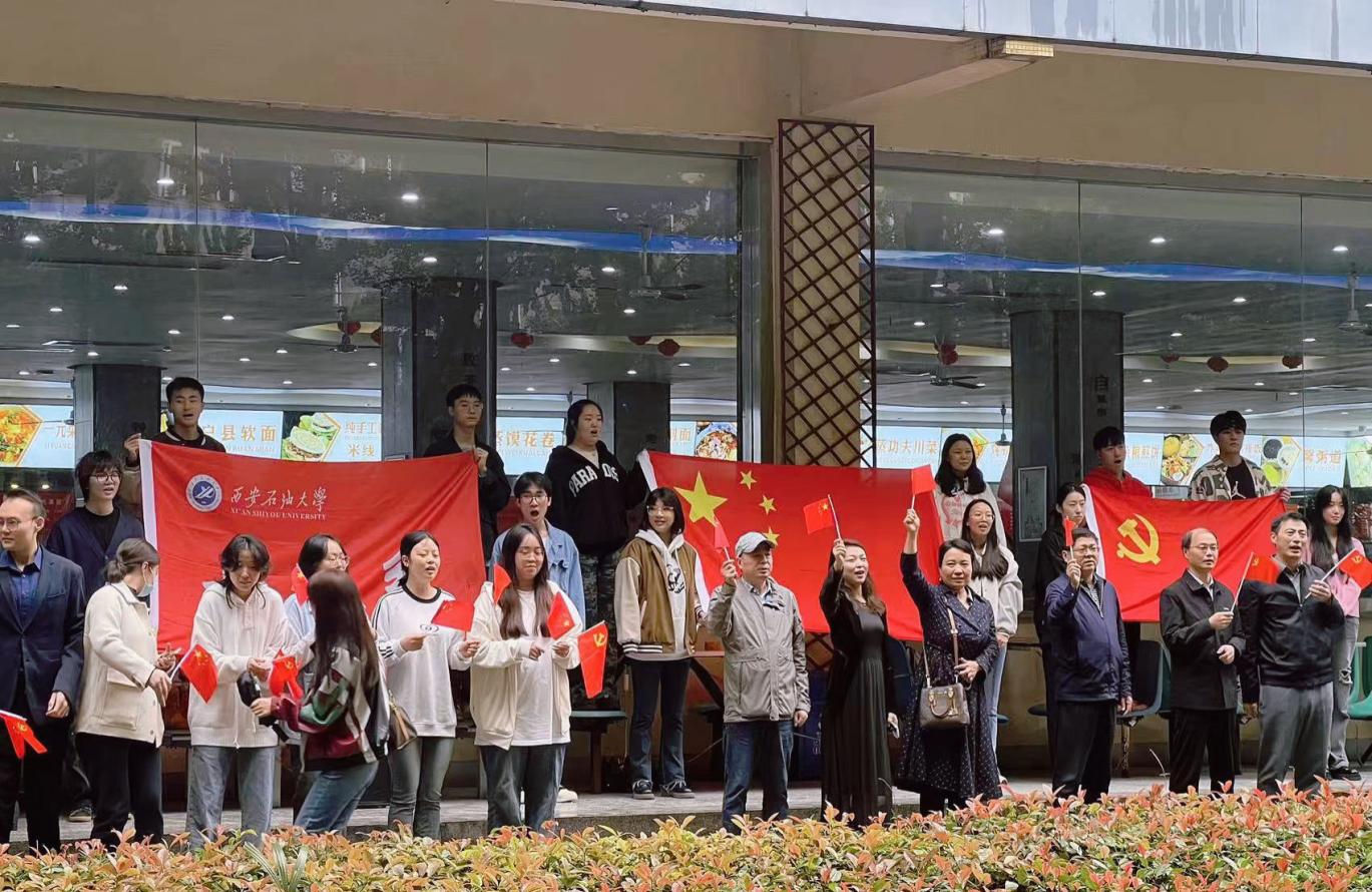 為慶祝中華人民共和國74歲華誕,激發(fā)廣大師生的愛國熱情,9月27日中午,我校音樂系組織師生在雁塔校區(qū)學(xué)生餐廳舉辦“紅歌快閃”活動,圍繞“頌”祖國、“唱”祖國、“看”祖國等形式,進一步引導(dǎo)廣大師生傳承紅色愛國基因、樹立制度自信、展現(xiàn)青春風(fēng)貌。學(xué)??倳嫀煼畷悦?,研究生工作部、國際交流與合作處、高教研究與評估中心負責(zé)人,以及40余名音樂系師生參加了本次“紅歌快閃”活動。該活動由音樂系黨總支策劃,后勤處協(xié)辦,聲樂教研室朱玥老師指導(dǎo)。