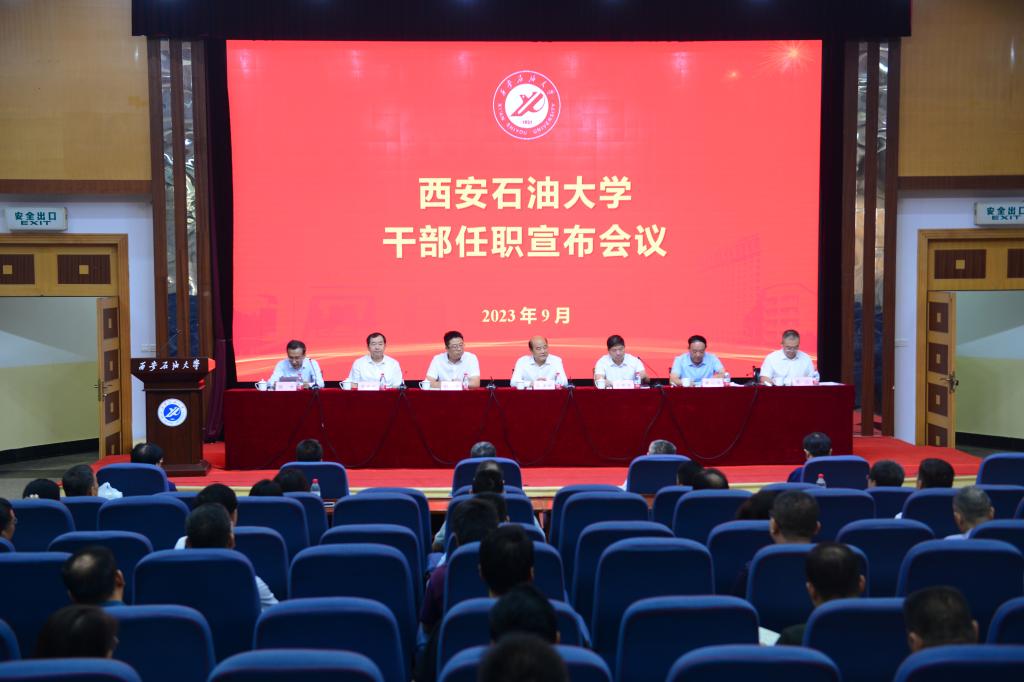 9月15日上午,西安石油大學召開干部大會,宣布省委關于學校干部任免的決定。省委決定:常江同志任西安石油大學黨委委員、書記;張君濤同志任西安石油大學黨委委員,為西安石油大學副校長人選。免去賽云秀同志西安石油大學黨委書記、委員職務;免去李天太同志西安石油大學黨委副書記、委員職務,不再擔任西安石油大學校長。