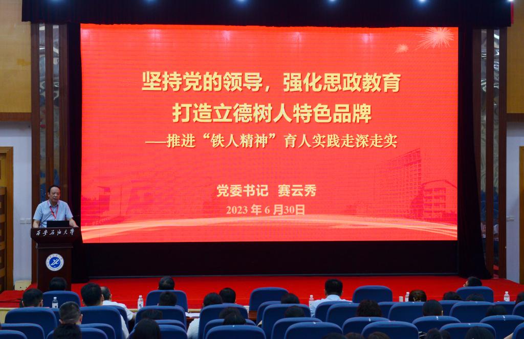 張木在致辭中指出,西安石油大學(xué)長(zhǎng)期以來(lái)堅(jiān)持石油精神辦學(xué),鐵人精神育人,延安精神鑄魂,構(gòu)建了以“四維兩翼一中心”為基本架構(gòu)的思政課育人體系,形成了“為人誠(chéng)實(shí)、基礎(chǔ)扎實(shí)、作風(fēng)樸實(shí)、工作踏實(shí)、開(kāi)拓創(chuàng)新”的“四實(shí)一新”人才培養(yǎng)特色。他強(qiáng)調(diào),作為第一批納入中國(guó)共產(chǎn)黨人精神譜系的偉大精神,鐵人精神無(wú)論在過(guò)去、現(xiàn)在還是將來(lái),都有著不朽的時(shí)代價(jià)值和永恒的生命力。