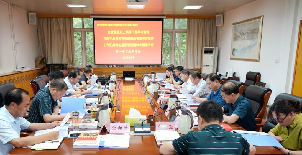 本次專題學(xué)習(xí)班采用視頻輔導(dǎo)、分組領(lǐng)學(xué)、個人學(xué)習(xí)等多種方式進行。全體學(xué)員認真聽取了趙一德同志在全省市廳級主要領(lǐng)導(dǎo)干部專題學(xué)習(xí)班第一期上的主題輔導(dǎo)報告暨黨課,觀看了省委教育工委書記劉建林同志的主題輔導(dǎo)報告暨黨課視頻,聽取了《貫徹落實習(xí)近平總書記重要講話精神,奮力譜寫中國式現(xiàn)代化建設(shè)的陜西新篇章》專題講座,聽取了省委教育工委委員、省教育廳副廳長王海波在結(jié)業(yè)式上的總結(jié)講話。在分組領(lǐng)學(xué)和專題研討環(huán)節(jié),校黨委理論學(xué)習(xí)中心組帶頭領(lǐng)學(xué)了習(xí)近平總書記在聽取陜西省委和省政府工作匯報時的重要講話、習(xí)近平主席在中國-中亞峰會上的主旨講話、習(xí)近平總書記歷次來陜考察重要講話重要指示等內(nèi)容。學(xué)員們緊扣培訓(xùn)主題,結(jié)合學(xué)校事業(yè)發(fā)展和“十四五”發(fā)展規(guī)劃的目標任務(wù)和個人學(xué)習(xí)、工作實際,談體會、議收獲,談設(shè)想、提建議,深入開展學(xué)習(xí)研討,交流分享心得體會。