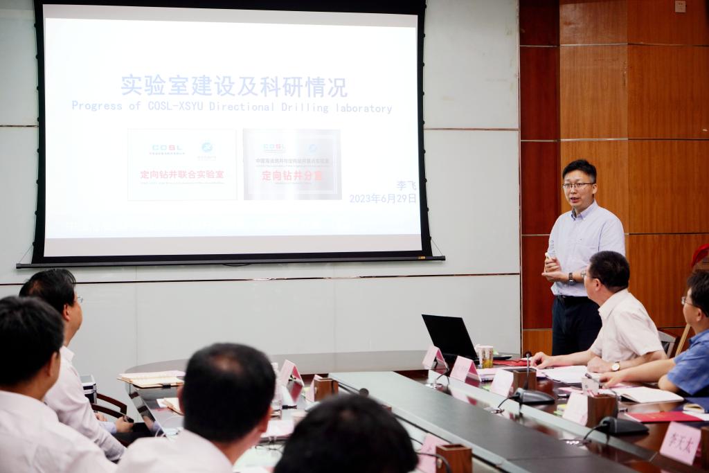 電子工程學院李飛教授簡要匯報了實驗室建設及科研情況。隨后,與會人員圍繞定向鉆井領域的相關技術進行了深入交流和探討。