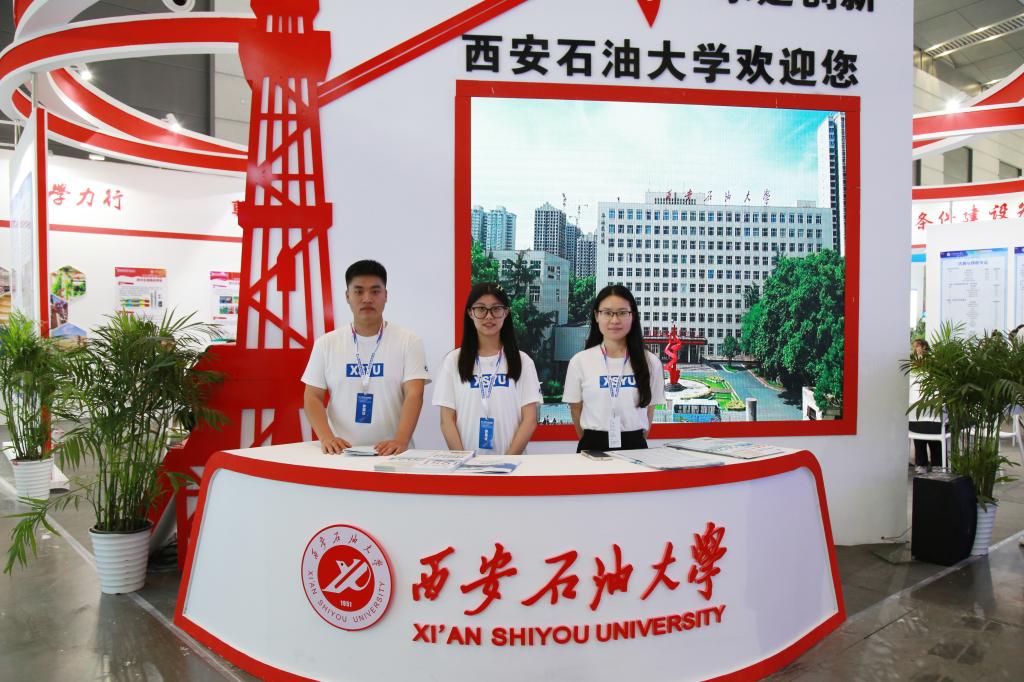 我校展區(qū)位于西安國(guó)際會(huì)展中心核心展區(qū)1館,共有15項(xiàng)科研成果、15項(xiàng)研究生創(chuàng)新成果參展。展臺(tái)設(shè)計(jì)采用彩色圖文展板、科研成果實(shí)物展品、宣傳彩頁(yè)等多種形式,全方位展示了我校文化建設(shè)成果、“互聯(lián)網(wǎng)+”大學(xué)生創(chuàng)新創(chuàng)業(yè)成果、科技成果及研究生創(chuàng)新成果,并著重突出了石油石化特色。