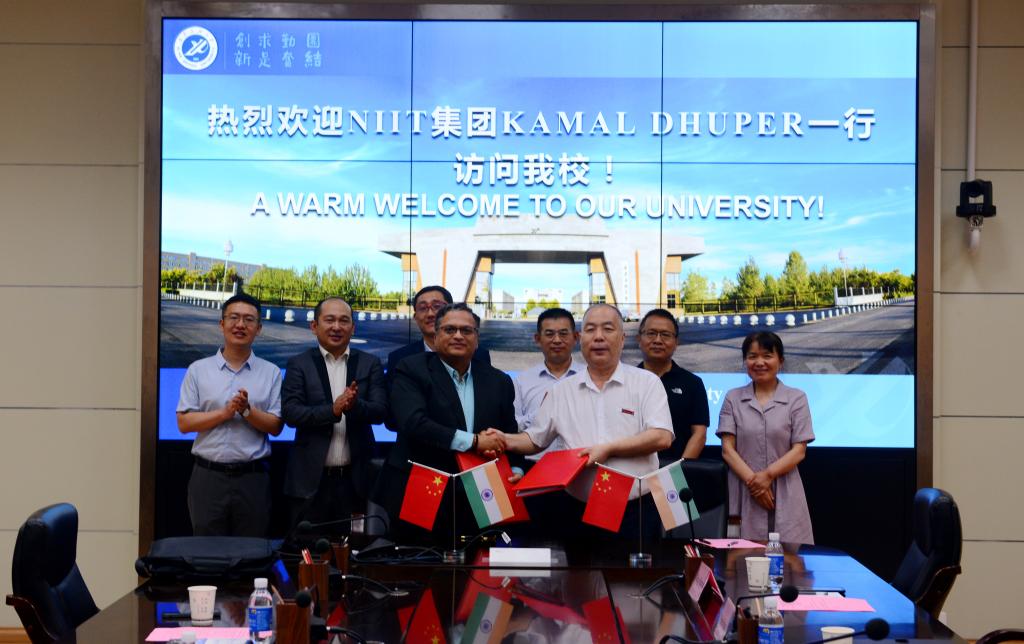 6月20日,印度NIIT有限公司全球副總裁兼中國(guó)區(qū)總裁柯謀·杜博(Kamal Dhuper)、中國(guó)區(qū)副總裁徐海峰、華北區(qū)總監(jiān)郭浩一行訪問我校。副校長(zhǎng)陳軍斌在雁塔校區(qū)第二會(huì)議室會(huì)見來(lái)賓,并代表學(xué)校與NIIT公司續(xù)簽合作協(xié)議。根據(jù)協(xié)議,我校將引進(jìn)NIIT本科人才培養(yǎng)計(jì)劃、教材和師資,與NIIT聯(lián)合培養(yǎng)計(jì)算機(jī)科學(xué)與技術(shù)、軟件工程專業(yè)本科生。雙方就相關(guān)問題進(jìn)行了討論,達(dá)成一致將在今年啟動(dòng)聯(lián)合培養(yǎng)工作。教務(wù)處、財(cái)務(wù)處、國(guó)際交流與合作處、計(jì)算機(jī)學(xué)院負(fù)責(zé)人參加會(huì)議。我校與NIIT公司在2019年6月簽訂了校企合作聯(lián)合辦學(xué)協(xié)議,后因疫情原因推遲項(xiàng)目實(shí)施。