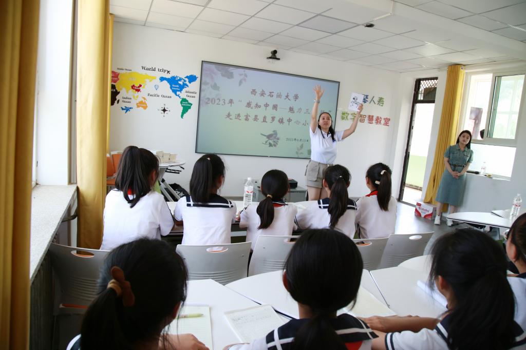 在直羅小學(xué),留學(xué)生們?yōu)樾W(xué)生們帶來(lái)了有趣生動(dòng)的英語(yǔ)口語(yǔ)課。實(shí)踐教學(xué)活動(dòng)是“感知中國(guó)”活動(dòng)重要組成部分,在互動(dòng)課堂上,小學(xué)生們與來(lái)自不同國(guó)家的留學(xué)生互動(dòng)交流,來(lái)自馬來(lái)西亞的詠翰分別用中文、英文、馬來(lái)西亞語(yǔ)給小學(xué)生們教了生日祝福歌,來(lái)自哈薩克斯坦的小云用圖畫(huà)、猜謎游戲?yàn)樾W(xué)生們上了一堂生動(dòng)活潑的英語(yǔ)課。有趣的英語(yǔ)課堂激發(fā)了小學(xué)生學(xué)習(xí)英語(yǔ)的熱情和濃厚的興趣,課堂氣氛熱烈,同學(xué)們發(fā)言踴躍,一節(jié)課下來(lái)小學(xué)生們意猶未盡。英語(yǔ)課堂外,是以“傳播快樂(lè)足球”為主題的足球互動(dòng)活動(dòng),留學(xué)生與小學(xué)生們開(kāi)展了一場(chǎng)足球友誼賽。場(chǎng)上,參賽隊(duì)員們齊心協(xié)力,奮勇拼搏。帶球、護(hù)球、傳球、射球,動(dòng)作嫻熟,拼勁十足。就這樣,初次來(lái)到直羅小學(xué)的留學(xué)生們感受到了當(dāng)?shù)氐娘L(fēng)土人情,并對(duì)接下來(lái)與孩子們的相遇充滿了期待?;顒?dòng)中,我校專程為直羅小學(xué)帶去了50本捐贈(zèng)圖書(shū)和5個(gè)嶄新足球。