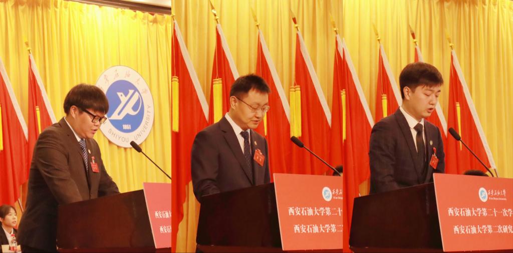 大會(huì)圓滿完成各項(xiàng)既定任務(wù),表決通過(guò)了《西安石油大學(xué)學(xué)生會(huì)章程(修訂案)》《西安石油大學(xué)研究生會(huì)章程(修正案)》,通過(guò)民主投票選舉產(chǎn)生了新一屆學(xué)生會(huì)委員會(huì)、研究生會(huì)委員會(huì)委員和主席團(tuán)成員,并向全校同學(xué)發(fā)出《學(xué)習(xí)二十大 永遠(yuǎn)跟黨走 奮進(jìn)新征程》的倡議書(shū)。