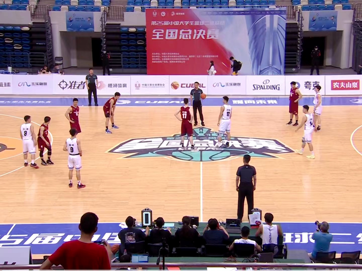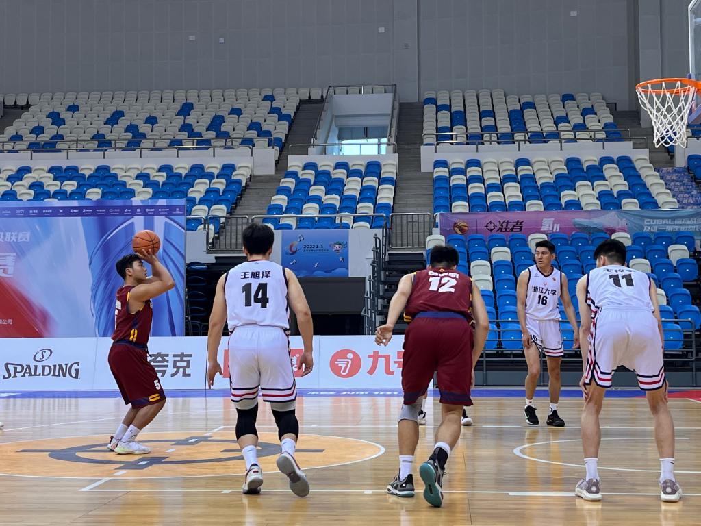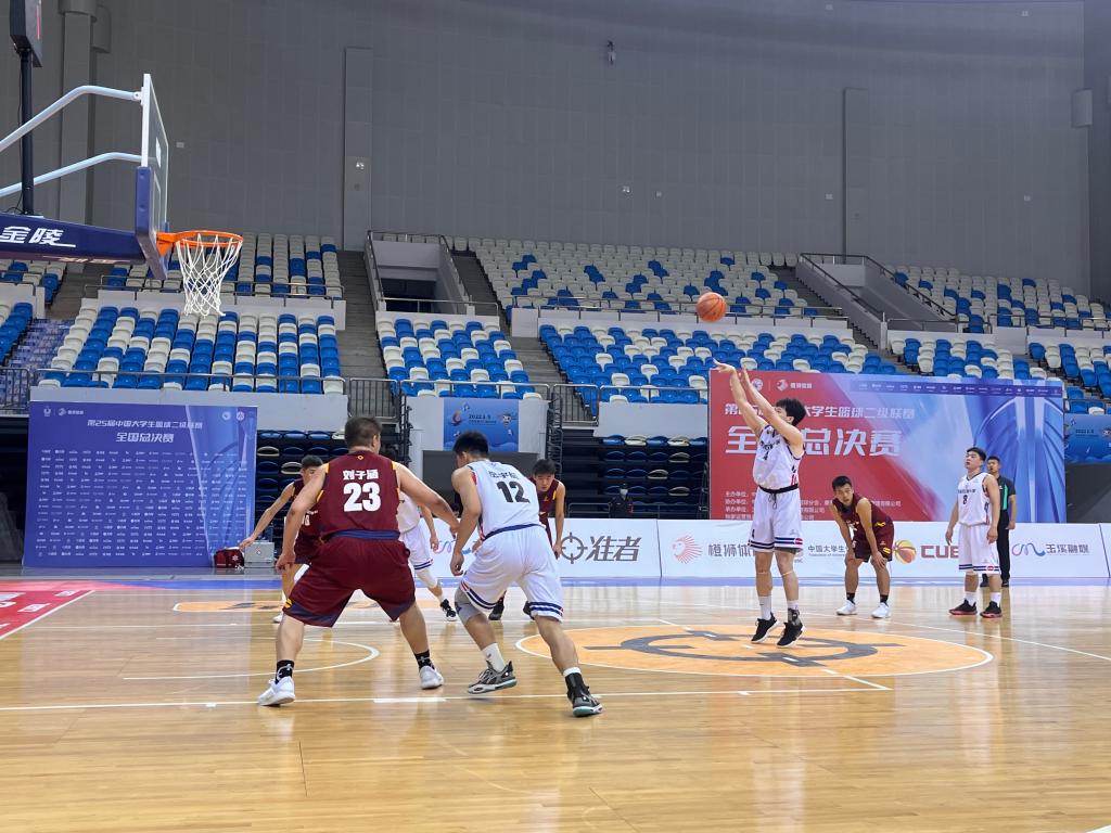 在全國(guó)賽小組賽中,首場(chǎng)面對(duì)南區(qū)球隊(duì)安徽理工大學(xué)。首次面對(duì)南方球隊(duì)小、快、靈的打法,我方隊(duì)員強(qiáng)硬防守、耐心進(jìn)攻,由于地理位置原因,首發(fā)隊(duì)員們很快出現(xiàn)了體力不支等情況,主教練迅速調(diào)整陣容,給予休息,隊(duì)員們咬牙堅(jiān)持拼搏,始終保持著領(lǐng)先的優(yōu)勢(shì),最終以98:78的比分戰(zhàn)勝安徽理工大學(xué),首戰(zhàn)告捷。5月20日我校迎來第二場(chǎng)小組賽,對(duì)陣曾兩次獲得全國(guó)總冠軍的中國(guó)刑事警察學(xué)院。開局面對(duì)對(duì)方全場(chǎng)緊逼,五上五下的戰(zhàn)術(shù),我校隊(duì)員咬緊牙關(guān)、穩(wěn)扎穩(wěn)打,上半場(chǎng)結(jié)束時(shí)雙方比分膠著,下半場(chǎng)我校隊(duì)員手感火熱,率先進(jìn)入節(jié)奏,打出一波小高潮,最終以71:48大比分戰(zhàn)勝中國(guó)刑事警察學(xué)院。5月21日我校迎來小組賽第三場(chǎng)比賽,對(duì)戰(zhàn)南區(qū)冠軍浙江大學(xué)。上半場(chǎng)比賽雙方難舍難分,以平局結(jié)束。下半場(chǎng),我校隊(duì)員狀態(tài)回暖,連續(xù)三分出手,多次打成二加一,逐漸拉開分差,最終以79:64戰(zhàn)勝南區(qū)冠軍浙江大學(xué)。我校以小組賽全勝的優(yōu)異戰(zhàn)績(jī)出線,晉級(jí)到后續(xù)的淘汰賽中。