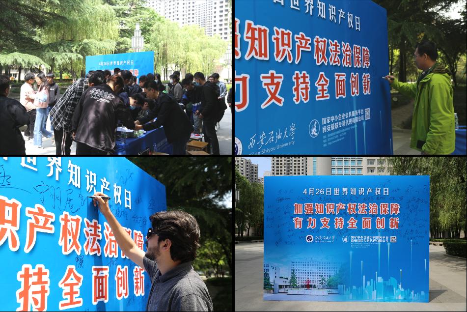 本次“世界知識產(chǎn)權日”系列宣傳活動受到了學校師生的廣泛關注和歡迎。在東方石油樓前設置知識產(chǎn)權宣傳幕墻,活動現(xiàn)場設立咨詢臺,向師生宣傳、講解知識產(chǎn)權保護相關法律法規(guī)、申請專利和版權的方法和途徑、商標的注冊與續(xù)展等知識,發(fā)放宣傳資料等1500余份,解答師生咨詢近40人次,并且?guī)熒筒糠至魧W生們在宣傳幕墻上踴躍簽名,以表達對知識產(chǎn)權的尊重與維護。
