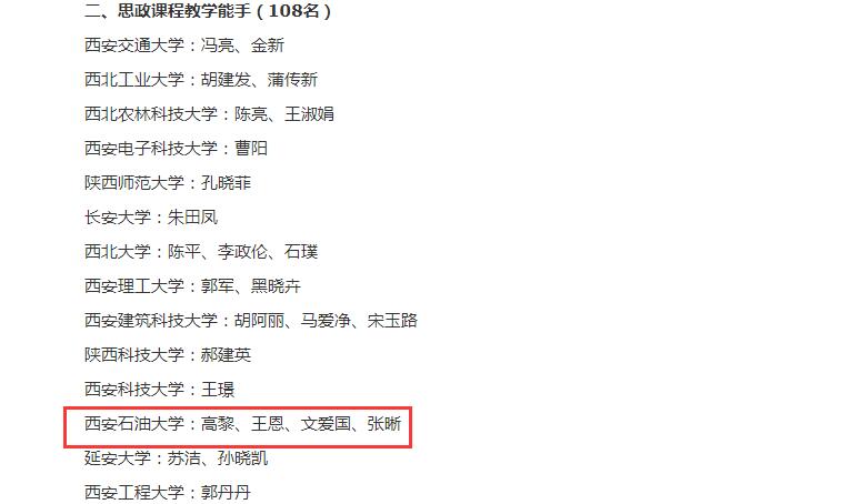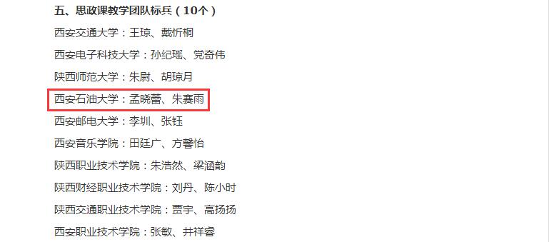 2022年度陜西高校思政課教師“大練兵”省級現(xiàn)場展示獲獎名單于4月13日公布,我校馬克思主義學院教師李海霞獲得思政課程教學標兵稱號,孟曉蕾、朱賽雨獲得思政課教學團隊標兵稱號,高黎、王恩、文愛國、張晰獲得思政課程教學能手稱號。