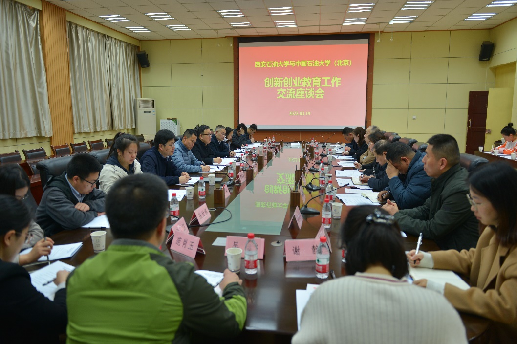 陳軍斌代表學校對中國石油大學(北京)領導一行的來訪表示歡迎。他簡要介紹了學校近年來在創(chuàng)新創(chuàng)業(yè)教育與管理方面的建設情況和取得成果。他表示,西安石油大學和中國石油大學(北京)作為兄弟院校,具有相同行業(yè)背景,兩校有著深厚友誼和合作淵源,尤其克拉瑪依校區(qū)與學校同處西部,人才培養(yǎng)目標相近,項目和平臺建設上有著良好合作基礎。他期待兩校進一步加強交流合作,不斷強化兩校培養(yǎng)西部國家能源戰(zhàn)略人才力量的使命擔當。在后續(xù)的創(chuàng)新創(chuàng)業(yè)教育工作開展當中,學校應積極向中國石油大學(北京)學習借鑒優(yōu)秀的創(chuàng)新管理經驗與制度,建設更加完備的創(chuàng)新創(chuàng)業(yè)人才培養(yǎng)體系,在建設高質量創(chuàng)新創(chuàng)業(yè)教育體系等方面邁上更高臺階。