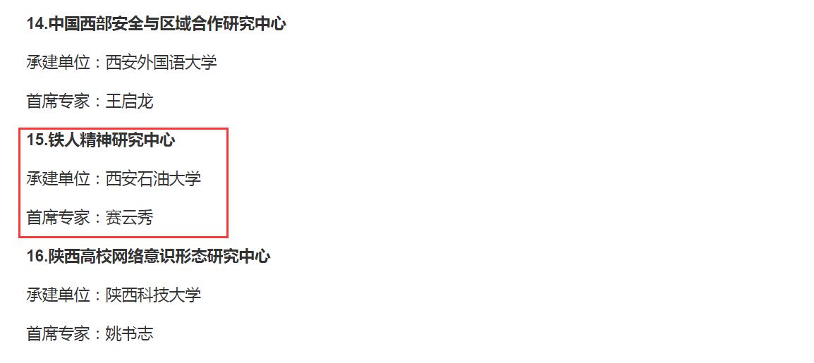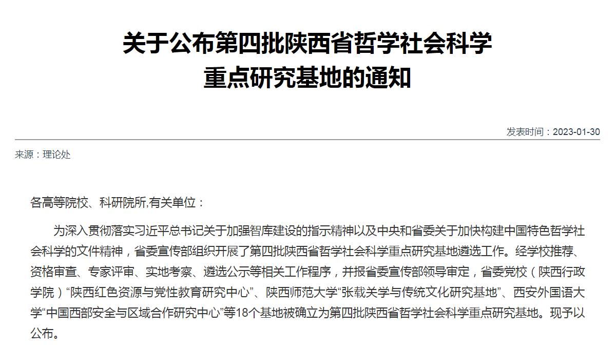 近日,省委宣傳部發(fā)布了《關(guān)于公布第四批陜西省哲學社會科學重點研究基地的通知》,我校馬克思主義學院牽頭申報的“鐵人精神研究中心”被確立為第四批陜西省哲學社會科學重點研究基地。
