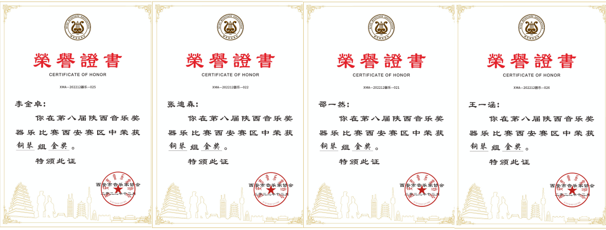 在鋼琴組比賽中,李金卓、張迪森、王一涵、邵一然等4名同學榮獲金獎,鄭黎霏陽、關英杰、朱語函、張冰、劉美含、管華慶、龍虹糧、呂夢、叢伶芯、陳音汝等10名同學榮獲銀獎,范詩雨、郭書語、康鑫、黃捷航、吳韓雪等5名同學榮獲銅獎。