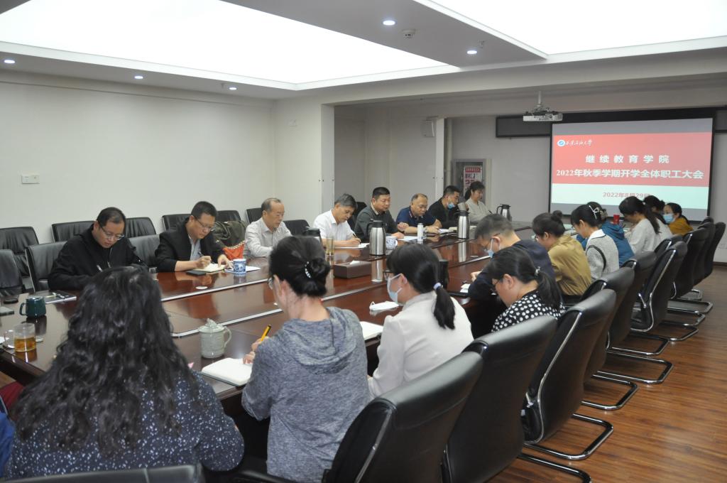 8月29日下午,繼續(xù)教育學(xué)院召開新學(xué)期職工大會(huì),總結(jié)暑期工作,部署新學(xué)期工作。副校長楊戰(zhàn)社出席會(huì)議,繼續(xù)教育學(xué)院黨總支書記耿嶺主持會(huì)議。