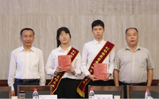 座談會(huì)后,張木和陳軍斌代表學(xué)校向畢業(yè)生代表贈(zèng)送了書籍。