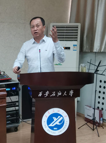 在授課中,張榮軍從“當(dāng)前世界能源的總體形勢(shì)”“我國(guó)石油天然氣工業(yè)發(fā)展趨勢(shì)”“世界能源形勢(shì)發(fā)展對(duì)我國(guó)的挑戰(zhàn)”三個(gè)方面系統(tǒng)闡述了石油天然氣資源對(duì)國(guó)家戰(zhàn)略的深遠(yuǎn)影響。他全面回顧了新中國(guó)成立以來石油資源進(jìn)出口四個(gè)階段的歷史,并指出新世紀(jì)面臨著世界能源供需關(guān)系總體緊張的局面。張榮軍強(qiáng)調(diào),要積極推動(dòng)我國(guó)能源革命,堅(jiān)持“四個(gè)革命、一個(gè)合作”,刻苦鉆研,不斷奮進(jìn),堅(jiān)持科技創(chuàng)新,加快實(shí)施國(guó)家能源安全戰(zhàn)略。最后,張榮軍介紹了學(xué)??蒲刑厣图夹g(shù)優(yōu)勢(shì),并號(hào)召全體石油學(xué)子要秉承石油精神,夯實(shí)學(xué)業(yè)基礎(chǔ),練就過硬本領(lǐng),培養(yǎng)強(qiáng)烈的家國(guó)情懷,為國(guó)家能源發(fā)展作出突出貢獻(xiàn)。