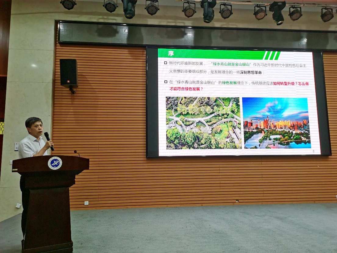 楊戰(zhàn)社的思政課以2020年9月22日習(xí)近平總書記在第75屆聯(lián)合國大會一般性辯論會上提出的“碳達(dá)峰、碳中和”目標(biāo)為背景,落實《中共中央 國務(wù)院關(guān)于完整準(zhǔn)確全面貫徹新發(fā)展理念做好碳達(dá)峰碳中和工作的意見》文件精神,圍繞”提升城鄉(xiāng)建設(shè)綠色低碳發(fā)展質(zhì)量”工作重點任務(wù)展開,談到我國致力于建筑業(yè)轉(zhuǎn)型升級——綠色高質(zhì)量發(fā)展。楊戰(zhàn)社從專業(yè)的角度,講授了建筑業(yè)發(fā)展面臨的挑戰(zhàn)、綠色建造概念、綠色建造路徑、綠色建造產(chǎn)品等四個部分內(nèi)容,重點講授了EPC模式、BIM技術(shù)和REMPC模式,習(xí)近平生態(tài)文明思想貫穿整個知識體系,踐行“綠水青山就是金山銀山”理念,伴隨著5G智能時代的發(fā)展,智能建造在不斷為人類美好生活需要和“雙碳”目標(biāo)達(dá)成貢獻著力量,啟迪智慧,引人深思。