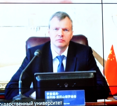 奧列格·羅曼諾夫在致辭中表示,中國是最可靠的合作伙伴,他們已經(jīng)做好了與我校開展全方位合作的準(zhǔn)備。他說,波洛茨克國立大學(xué)是白俄羅斯50多所高校中最領(lǐng)先的院校之一,擁有先進的教學(xué)科研設(shè)施,與白俄羅斯、俄羅斯石油化工企業(yè)聯(lián)系緊密,雙方學(xué)校是理想的國際合作伙伴。相信兩校可以充分發(fā)揮各自優(yōu)勢,合作共贏、共同發(fā)展,實現(xiàn)合作交流的常態(tài)化、合作成果的長效化,并期待新冠疫情早日結(jié)束,雙方學(xué)??梢越涣骰ピL,促進合作項目的多元化。
