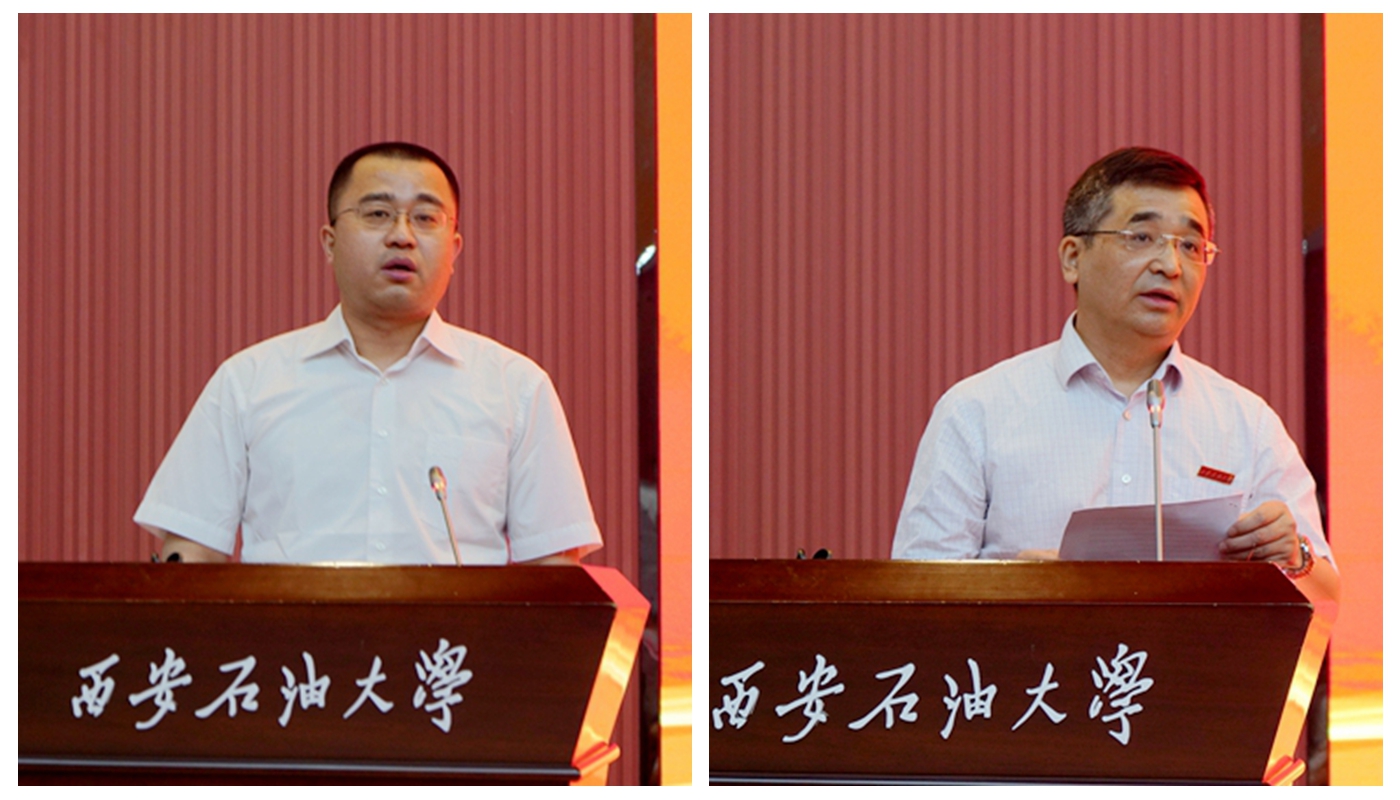 6月7日上午,學(xué)校在鄠邑校區(qū)弘石學(xué)術(shù)報(bào)告廳隆重舉行新能源學(xué)院、土木工程學(xué)院成立揭牌儀式。延長石油集團(tuán)公司副總經(jīng)理王香增、中國石油長慶油田公司副總工程師李時(shí)宣、中國黃金集團(tuán)建設(shè)有限公司常務(wù)副總經(jīng)理呂有意、陜西建工控股集團(tuán)有限公司副總經(jīng)理劉小強(qiáng)應(yīng)邀出席。學(xué)校黨政領(lǐng)導(dǎo)出席揭牌儀式。相關(guān)職能部門和相關(guān)院(系)負(fù)責(zé)人,以及新能源學(xué)院、土木工程學(xué)院師生代表參加揭牌儀式。揭牌儀式由副校長程永清主持。