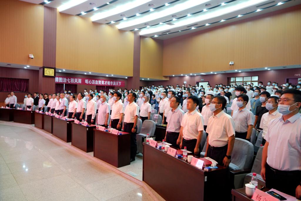 校長李天太在致辭中首先向長期以來關(guān)心支持學(xué)校事業(yè)發(fā)展的兄弟企業(yè)和社會各界表示衷心的感謝,向?yàn)榛I備、組建新能源學(xué)院和土木工程學(xué)院無私奉獻(xiàn)的師生員工表示誠摯的敬意。他指出,成立新能源學(xué)院和土木工程學(xué)院是學(xué)校服務(wù)國家能源戰(zhàn)略和區(qū)域經(jīng)濟(jì)社會發(fā)展的現(xiàn)實(shí)需要,也是推動學(xué)校高質(zhì)量發(fā)展的必然要求。新能源學(xué)院和土木工程學(xué)院的成立是一個(gè)嶄新未來的開始,光榮而艱巨、任重而道遠(yuǎn),需要全體師生揚(yáng)起風(fēng)帆,砥礪前行。一是要做好學(xué)院建設(shè)規(guī)劃。要按照“一流學(xué)科”建設(shè)標(biāo)準(zhǔn),聚焦國家重大需求戰(zhàn)略和地方經(jīng)濟(jì)社會發(fā)展,積極融入新發(fā)展格局,搶抓先機(jī)、謀劃未來,搶占高地、打造高峰,在服務(wù)中創(chuàng)新,在創(chuàng)新中發(fā)展,全面加強(qiáng)學(xué)科專業(yè)建設(shè),不斷提升綜合競爭力。二是要加強(qiáng)師資隊(duì)伍建設(shè)。要以新學(xué)院建設(shè)為契機(jī),大力加強(qiáng)人才引育工作,打造一支數(shù)量足、結(jié)構(gòu)好、梯隊(duì)優(yōu)、質(zhì)量高的師資隊(duì)伍。三是要突出人才培養(yǎng)質(zhì)量。要堅(jiān)持以生為本,突出內(nèi)涵發(fā)展和高質(zhì)量發(fā)展,瞄準(zhǔn)能源行業(yè)和區(qū)域經(jīng)濟(jì)發(fā)展所需,不斷優(yōu)化人才培養(yǎng)方案。