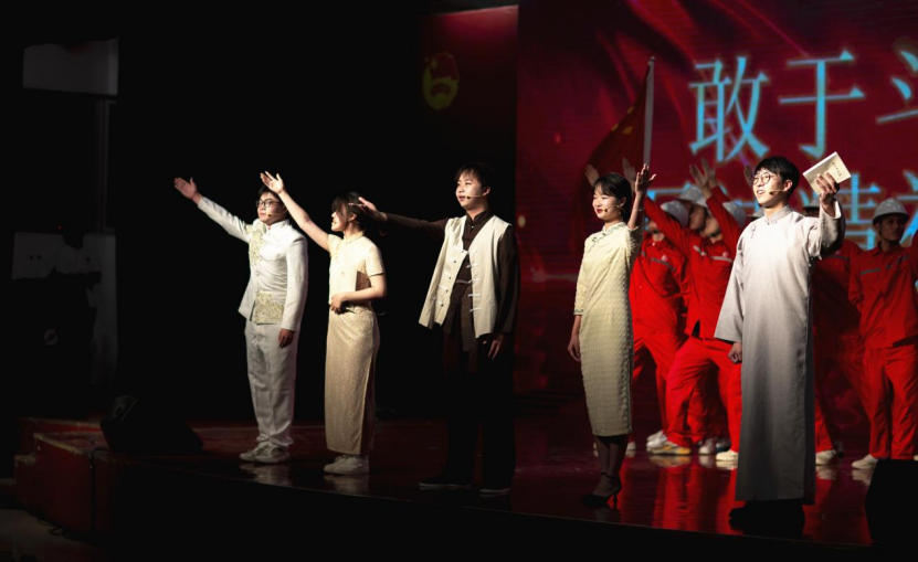 表彰大會結(jié)束后,與會人員一起觀看了“不負(fù)韶華,強(qiáng)國有我”青春詩會。本次詩會將不同時期的愛國主義經(jīng)典詩作與部分原創(chuàng)內(nèi)容有機(jī)結(jié)合,按照時間的脈絡(luò)分為“革命理想高于天”“改革建設(shè)動天地”“時代征程起宏圖”三大篇章。在第一篇章,《不朽》《吹號者》等作品鮮明生動地展現(xiàn)出新民主主義革命時期,中國共產(chǎn)黨和人民軍隊的崇高革命理想與堅定革命信念,表達(dá)出不怕犧牲、敢于勝利的無產(chǎn)階級革命樂觀主義精神。在第二篇章,《祖國的春風(fēng)》《盛世中國》等作品集中展現(xiàn)了改革開放和社會主義現(xiàn)代化建設(shè)時期,黨領(lǐng)導(dǎo)全國各族人民在中國特色社會主義建設(shè)中取得的偉大成就。在第三篇章,《石油時代贊歌》《新時代我們永遠(yuǎn)在路上》《北京冬奧頌》等作品集中展現(xiàn)了黨的十八大以來,以習(xí)近平同志為核心的黨中央領(lǐng)導(dǎo)廣大青年投身全面建成小康社會、全面建設(shè)社會主義現(xiàn)代化國家的偉大歷史進(jìn)程。