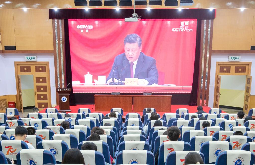 5月10日,慶祝中國共產(chǎn)主義青年團成立100周年大會在京隆重舉行。中共中央總書記、國家主席、中央軍委主席習近平出席大會并發(fā)表重要講話。習近平總書記代表黨中央,向全體共青團員和各級共青團組織、團干部,致以熱烈的祝賀和誠摯的問候。我校組織校黨委理論學習中心組成員,各單位負責人,教師、輔導員、團學干部、團員青年代表分別于雁塔校區(qū)、鄠邑校區(qū)18個分會場收聽收看慶祝大會直播。會后,我校在鄠邑校區(qū)組織團學干部召開貫徹落實習近平總書記慶祝共青團成立100周年大會重要講話精神師生座談會。習近平總書記的重要講話在我校師生中引發(fā)熱烈反響。