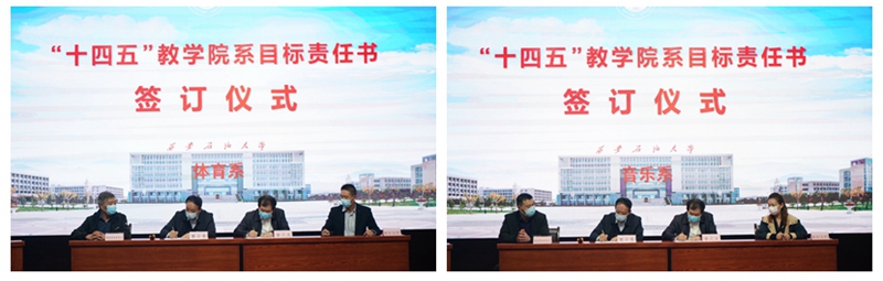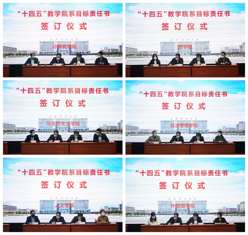 賽云秀強(qiáng)調(diào),學(xué)?!笆奈濉笔聵I(yè)發(fā)展規(guī)劃是學(xué)?!笆奈濉逼陂g的行動(dòng)指南和工作指引,此次學(xué)校與各院系簽訂“十四五”目標(biāo)責(zé)任書(shū)是推動(dòng)“十四五”規(guī)劃目標(biāo)任務(wù)如期實(shí)現(xiàn)的一項(xiàng)重要舉措,是激發(fā)院系辦學(xué)主動(dòng)性和推進(jìn)學(xué)校高質(zhì)量發(fā)展的有效途徑。各院系要以此次簽訂“十四五”目標(biāo)責(zé)任書(shū)為契機(jī),進(jìn)一步統(tǒng)一思想、提高認(rèn)識(shí),明確目標(biāo)、凝心聚力,按照學(xué)校“十四五”總體發(fā)展目標(biāo)確定的“一個(gè)目標(biāo)”“兩個(gè)堅(jiān)持”“三項(xiàng)改革”“四項(xiàng)成效”和“跳起來(lái)摘桃子”的要求,自我加壓,提高標(biāo)準(zhǔn),進(jìn)一步夯實(shí)工作責(zé)任、改進(jìn)工作作風(fēng),切實(shí)把各項(xiàng)目標(biāo)任務(wù)落到實(shí)處,確保學(xué)校“十四五”規(guī)劃目標(biāo)如期實(shí)現(xiàn)。