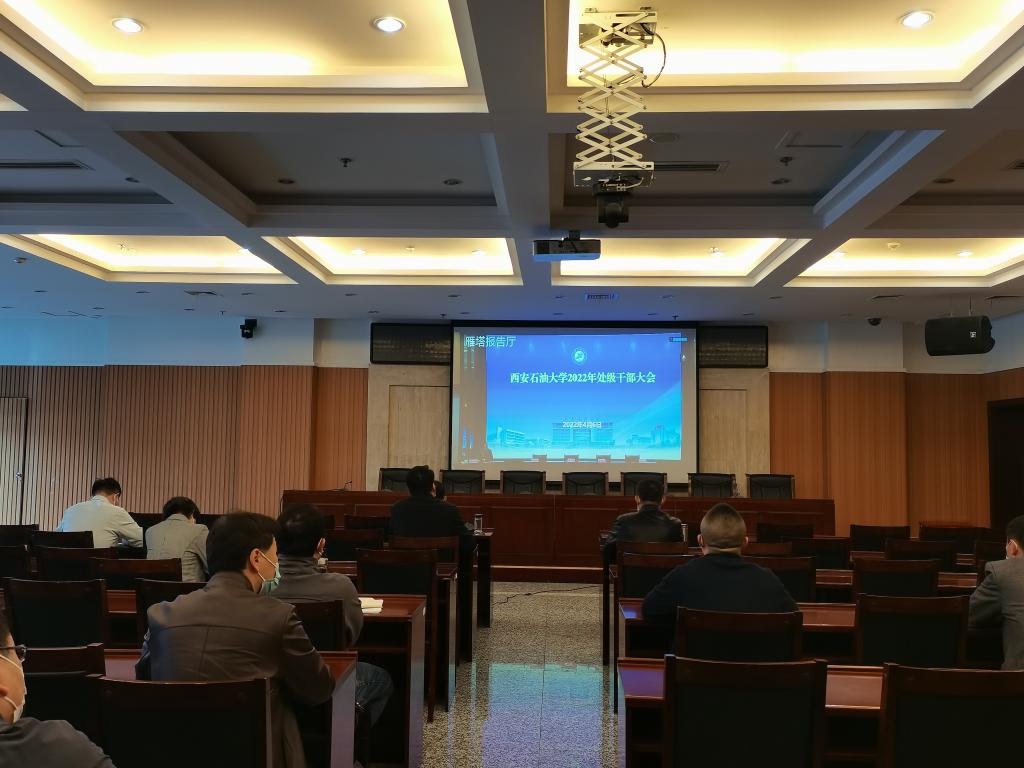 為落實(shí)“十四五”規(guī)劃目標(biāo)任務(wù),推進(jìn)學(xué)校高質(zhì)量創(chuàng)新發(fā)展,4月6日下午,學(xué)校在雁塔校區(qū)會(huì)議中心學(xué)術(shù)報(bào)告廳召開(kāi)2022年處級(jí)干部工作大會(huì),同時(shí)在第一會(huì)議室、第二會(huì)議室、第三會(huì)議室、鄠邑校區(qū)圖書(shū)館第一會(huì)議室設(shè)立分會(huì)場(chǎng)。全體校領(lǐng)導(dǎo)出席會(huì)議,全校處級(jí)干部參加會(huì)議。會(huì)議由校黨委書(shū)記賽云秀主持。