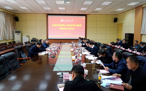 在雁塔校區(qū),賽云秀主持召開校級黨員領(lǐng)導(dǎo)人員黨史學(xué)習(xí)教育專題民主生活會,回顧一年來學(xué)校加強自身建設(shè)情況,總結(jié)成績,查擺不足,進(jìn)行黨性分析,開展批評和自我批評。指導(dǎo)組全體成員全程列席并督導(dǎo)。張倩黎在點評中對我校高質(zhì)量專題民主生活會表示肯定,并從鞏固深化專題民主生活會及黨史學(xué)習(xí)教育成果等方面提出了工作要求和指導(dǎo)意見。賽云秀代表學(xué)校領(lǐng)導(dǎo)班子作表態(tài)發(fā)言并提出整改思路和措施。
