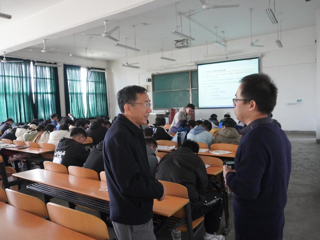 校領導走進教室,通過聽課看課和實地巡查,對教師授課、學生聽課、課堂教學秩序、教學設施設備運行等情況進行了全面細致的檢查。課間,校領導分別與任課教師就教學方式與方法、課堂組織與管理進行了親切交流,對老師們精神飽滿、干勁十足的教學狀態(tài)給予充分肯定,對同學們良好的學習狀態(tài)倍感欣慰;同時對課堂互動、思政元素融入等問題提出了建議和意見,對改進課堂教學方法、提高教學質(zhì)量提出了希望和要求。從檢查情況來看,新學期各院(系)和相關部門教學工作準備充分,廣大師生精神狀態(tài)飽滿,教學環(huán)境干凈整潔,教學設備運行良好,教學防疫措施到位,教學運行井然有序,新學期呈現(xiàn)出新氣象、新面貌。