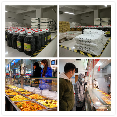 “手中有糧,防疫不慌”。后勤保障組及時采購大米1800袋、面份2000袋、食用油1600桶等,做好糧油肉蛋菜等重點生活必需品的貨源調(diào)度和動態(tài)補充,雁塔、鄠邑校區(qū)后勤庫房各種基礎食材物資儲備充足?!坝械某浴焙?,還要盡可能考慮“吃得好”,后勤保障組制作發(fā)布涵蓋5個校園餐廳、100余個供餐檔口組別的鄠邑校區(qū)選餐指南,近千種菜品清單及單價信息一目了然。在雁塔校區(qū)則開展了無接觸送餐服務,惠及不少師生。