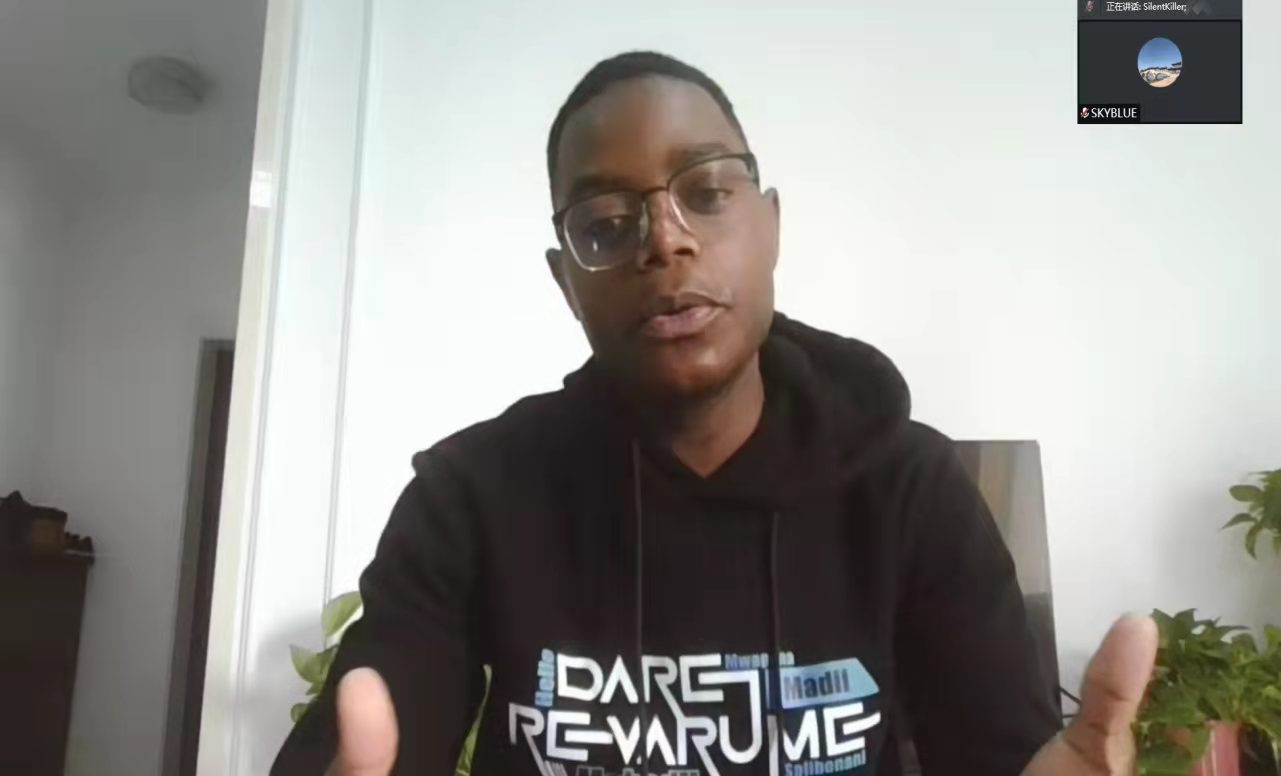 津巴布韋籍留學生杜康同學在誦讀會上講述他的十年來華留學之路