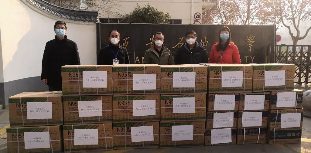 陜西延長石油(集團)有限責任公司、中國石油天然氣股份有限公司長慶油田分公司、西安嘉納電子科技有限公司、西安康硒匯商貿(mào)有限公司、中國銀行西安二環(huán)世紀星支行、陜西醫(yī)藥控股集團有限責任公司,經(jīng)濟管理學院2003級加亞洲校友、外國語學院教師張虹家屬王文龍先生等眾多企業(yè)和校友、家屬,紛紛慷慨解囊,為學校捐贈了一大批急需物資。