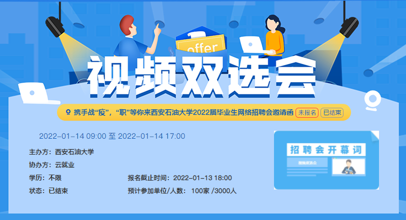 搭平臺。一是大力舉辦線上招聘活動,積極搭建網(wǎng)絡(luò)招聘平臺,暢通就業(yè)信息線上發(fā)布渠道,持續(xù)發(fā)布招聘信息,密集開展網(wǎng)絡(luò)招聘活動。疫情發(fā)生以來,已舉辦或承辦全國能源動力行業(yè)專場空中雙選會、千崗萬企業(yè) 百校聯(lián)合陜西抗疫助就業(yè)西安石油大學(xué)專場網(wǎng)絡(luò)招聘會、同心戰(zhàn)疫 助力就業(yè)陜西地區(qū)重點(diǎn)高校2022屆畢業(yè)生(公益)空中雙選會、陜西省2022屆畢業(yè)生綜合類網(wǎng)絡(luò)雙選會、攜手戰(zhàn)疫,職等你來西安石油大學(xué)2022屆畢業(yè)生網(wǎng)絡(luò)招聘會、陜西省部屬及省屬高水平大學(xué)暖冬行動·研后有你”2022屆畢業(yè)生冬季空中雙選會等大型招聘會共計(jì)15場,累計(jì)參會單位達(dá)4000余家。二是開啟重點(diǎn)企業(yè)重點(diǎn)行業(yè)專場空中宣講平臺。積極邀請用人單位參加空中宣講、互動答疑和視頻面試,全面加強(qiáng)與用人單位溝通交流與合作。截至目前,已開展空中宣講會10場,其中包括海爾集團(tuán)、浙江吉利控股、京東集團(tuán)、牧原食品在內(nèi)的優(yōu)質(zhì)用人單位。三是全面搜集挖掘各類招聘信息。疫情發(fā)生以來,充分利用就業(yè)指導(dǎo)中心官網(wǎng)、公眾號、QQ/微信群等累計(jì)發(fā)布包括中鐵一局集團(tuán)公司、中澤油服、中國一汽、中國船舶重工、十堰市選調(diào)生等單位招聘公告70次,招聘崗位信息81條,總點(diǎn)擊量達(dá)2萬余次。