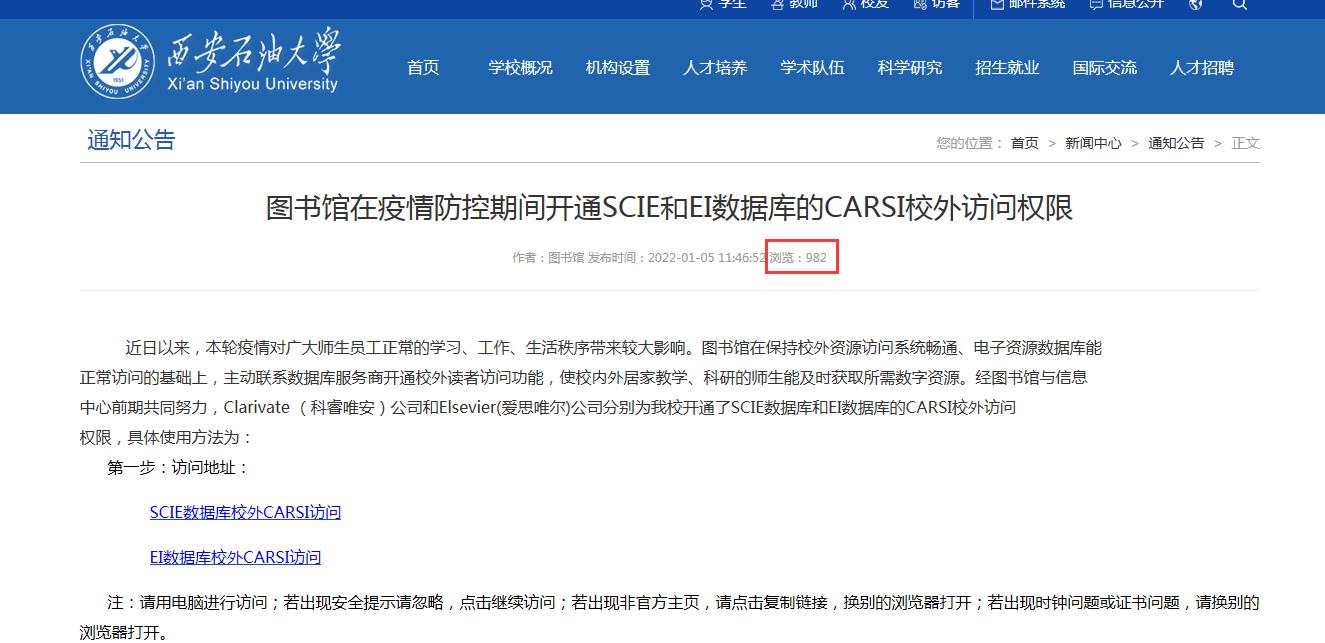 數(shù)據(jù)庫校外訪問開通一周以來,校園網(wǎng)發(fā)布的相關(guān)通知瀏覽量高出平日近6倍,校外訪問功能受到廣大師生的高度認(rèn)可。校外訪問功能提高了圖書館電子資源的利用率,幫助師生更便捷地使用各種電子學(xué)術(shù)資源,全力支持學(xué)校教學(xué)科研工作的順利開展。