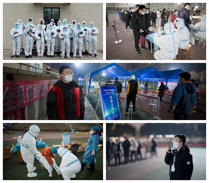 根據(jù)西安市疫情防控的核酸檢測安排,12月以來,學(xué)校需要進行多次全員核酸檢測,為了確保此項工作的順利、有序開展,研究生工作部、研究生會號召在校同學(xué)積極參與志愿服務(wù)工作。在招募公告發(fā)布的很短時間內(nèi),就有數(shù)百名研究生同學(xué)主動請纓,用實際行動彰顯西石大學(xué)子擔(dān)當(dāng)。研究生志愿者們反應(yīng)迅速、到崗及時,活躍在核酸檢測的驗碼環(huán)節(jié)和現(xiàn)場秩序維護中?!罢埓蠹冶3珠g距,有序進行核酸檢測” “同學(xué)們請自覺戴好口罩” “保持間距,提前打開一碼通”,每一句話都是認(rèn)真負責(zé),每一個動作都很細致入微,齊心協(xié)力為全校師生的健康保駕護航。身著防護服、戴口罩、護目鏡和一次性手套,一個個可愛的人夜以繼日,爭分奪秒地奮戰(zhàn)在沒有硝煙的戰(zhàn)場,“戰(zhàn)袍”早已被汗水打濕,手腳早已在嚴(yán)寒中凍得冰冷,但他們依然堅守一線,主動擔(dān)當(dāng)、盡職盡責(zé),共同守護全校師生的健康。截至目前,全校已有300余名,累計1000余人次研究生志愿者投入到核酸檢測工作中,獲得了全校師生的認(rèn)可。
