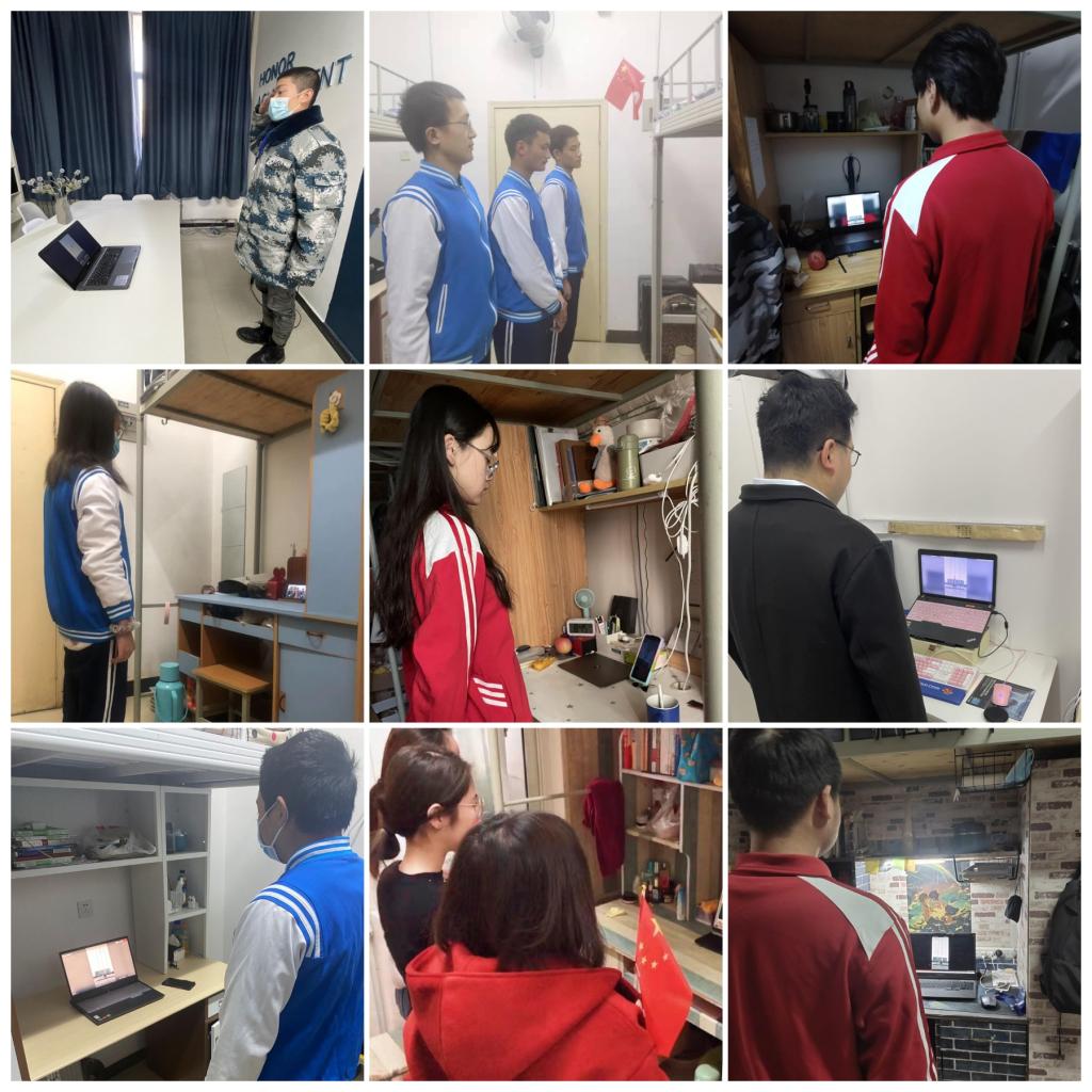 這是一場在特殊時期通過網(wǎng)絡直播的升國旗儀式。伴隨著激昂的《義勇軍進行曲》,我校師生們在宿舍通過觀看屏幕中冉冉升起的五星紅旗,高唱國歌,行注目禮,表達對祖國的無限熱愛與戰(zhàn)勝本次新冠疫情的堅定信心。