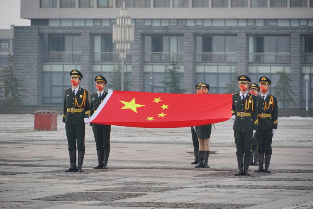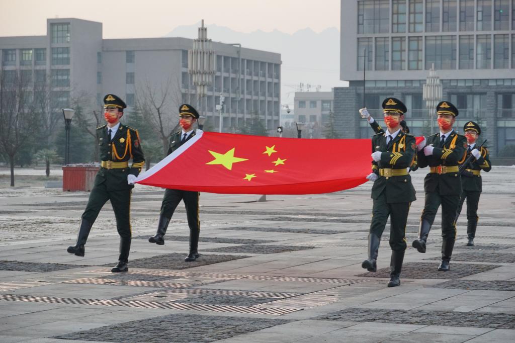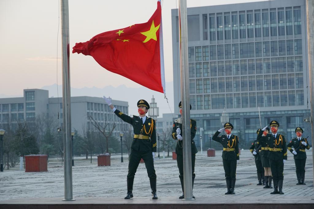 近日,西安疫情形勢復雜嚴峻,正處于防控關(guān)鍵窗口期,為強化愛國主義教育,激發(fā)廣大青年學生的愛黨、愛國自覺,調(diào)動廣大學生主動投身疫情防控的積極性,凝聚戰(zhàn)勝疫情的信心,2022年1月1日上午8時,我校在鄠邑校區(qū)圖書館北廣場舉行以“共同抗疫,愛國力行”為主題的升國旗儀式。全校師生通過網(wǎng)絡平臺直播觀看升旗儀式。