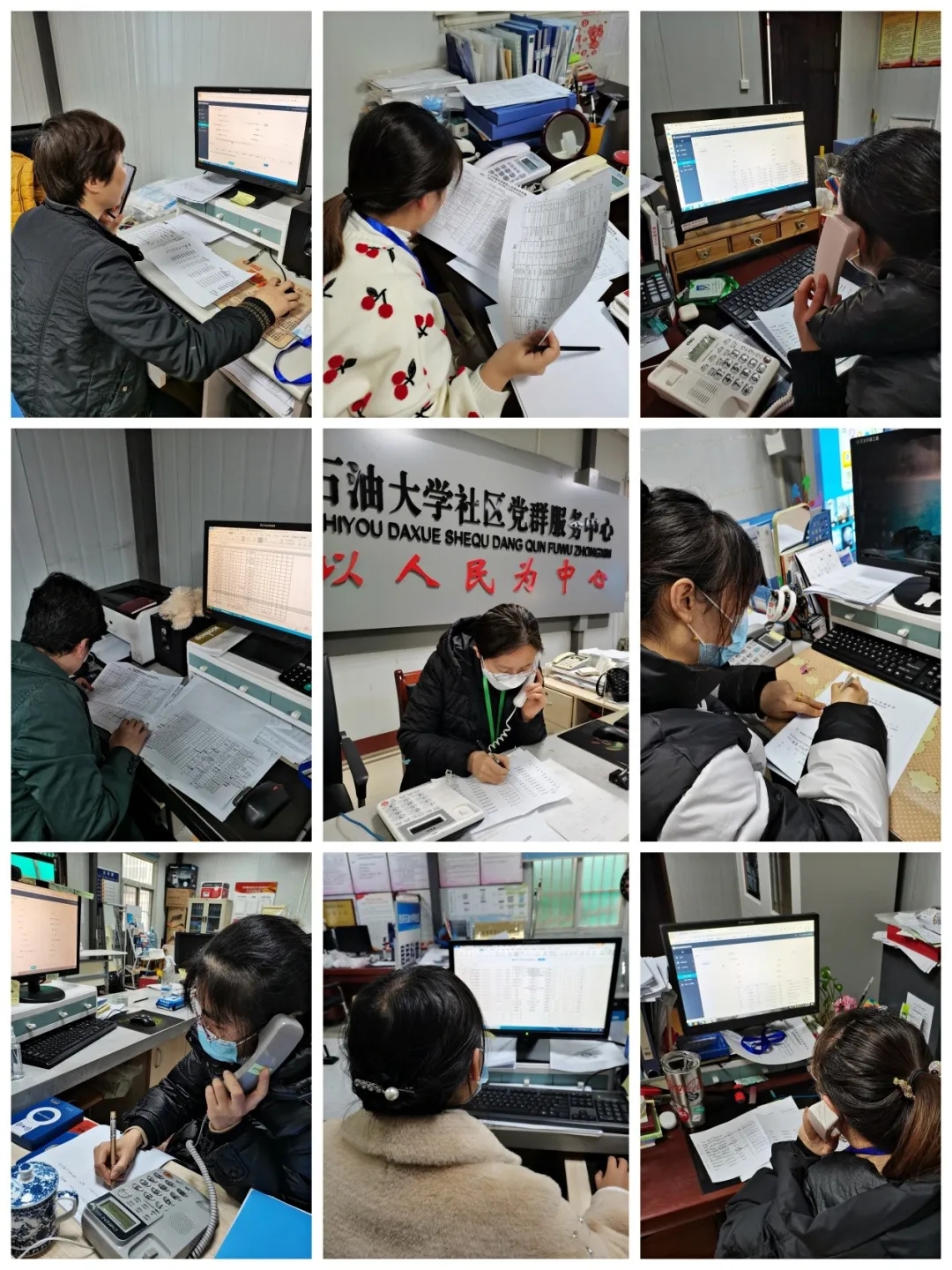 石油大學社區(qū)的工作人員密切協(xié)同兄弟部門,連續(xù)奮戰(zhàn)在一線,開展持續(xù)的全員核酸檢測工作,做到應(yīng)檢盡檢,不漏一人。在核酸檢測點上,后勤工作人員幫助維持點位秩序、落實一米線,進行數(shù)據(jù)錄入、承擔樣本轉(zhuǎn)運等工作,提高檢測效率與速度,著力盡快摸清校內(nèi)全員防控底數(shù)和落實做細檢疫措施。同時,后勤還擔負著校內(nèi)疫情流調(diào)信息核查工作,社區(qū)辦公室的流調(diào)人員每天要撥打幾百通電話,進行逐戶逐人的流調(diào)詢問、核實和登記,短短幾天內(nèi),已先后處理完1950條流調(diào)核查工作。
