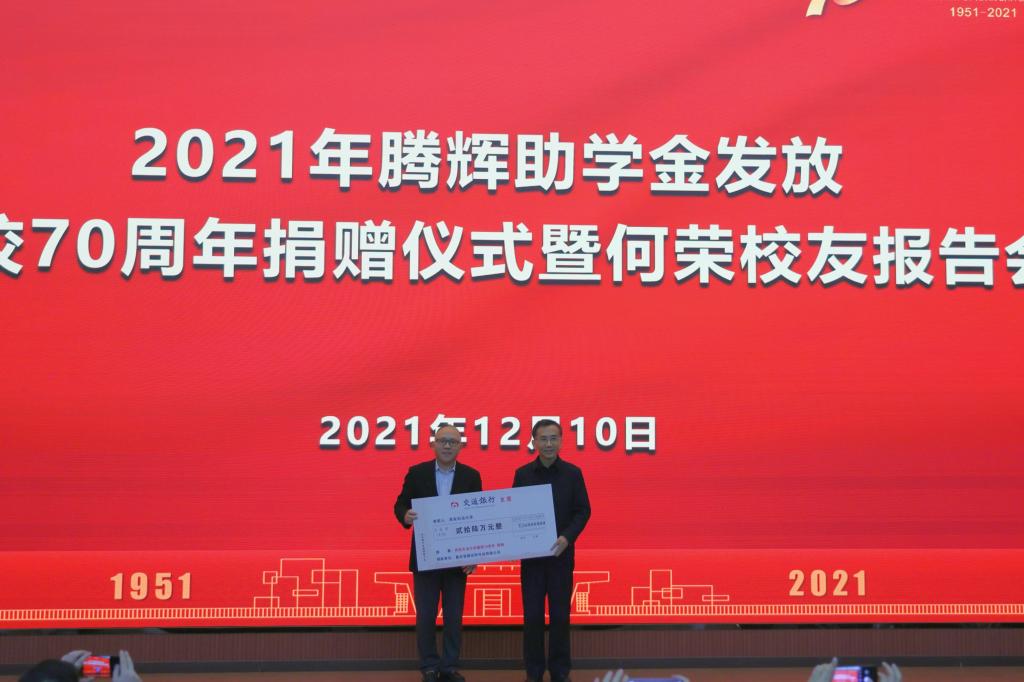 [學(xué)生工作]我校舉行2021年騰輝助學(xué)金發(fā)放、建校70周年捐贈(zèng)儀式暨何榮校友報(bào)告會(huì)