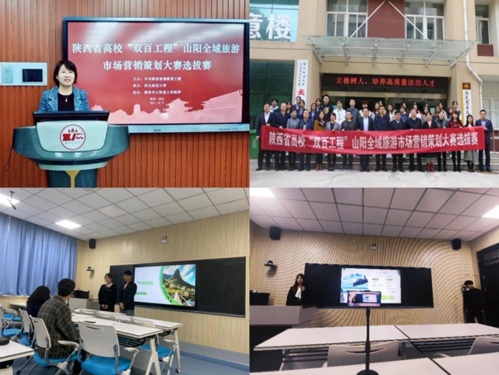 近日,我校三支學(xué)生團隊參加了陜西省高?!半p百工程”山陽全域旅游市場營銷策劃大賽總決賽。該項賽事,由中共陜西省委教育工委主辦、西北政法大學(xué)承辦、商洛市山陽縣人民政府協(xié)辦,旨在助力我省實現(xiàn)鞏固拓展脫貧攻堅成果同鄉(xiāng)村振興有效銜接。
