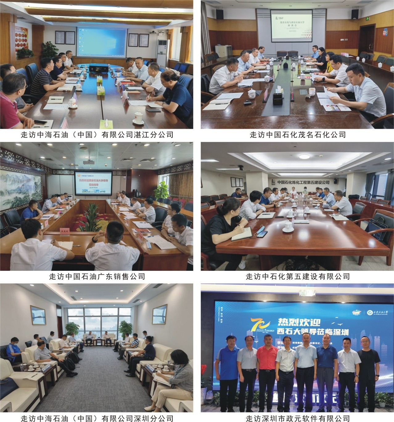 726日至81日,校黨委副書記、紀(jì)委書記、監(jiān)察專員李延平帶隊先后走訪了中海石油(中國)有限公司湛江分公司、中國石化茂名石化公司、中國石油廣東銷售公司、中國石化第五建設(shè)有限公司、中海石油(中國)有限公司深圳分公司、深圳市政元軟件有限公司(校友企業(yè))等6家企業(yè)。