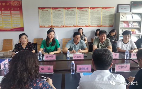 在富平縣文化館,楊戰(zhàn)社副校長(zhǎng)一行與富平縣文化和旅游局局長(zhǎng)盧戰(zhàn)強(qiáng)、副書記吳軍、副局長(zhǎng)文化館館長(zhǎng)張婷婷等就紅色文化的傳承與傳播、區(qū)域文化特色的凝練進(jìn)行了座談,然后一起參加了實(shí)踐基地揭牌儀式。盧戰(zhàn)強(qiáng)局長(zhǎng)介紹了富平縣文化和旅游產(chǎn)業(yè)的發(fā)展現(xiàn)狀。他說(shuō),富平縣的人文資源豐富、文化遺產(chǎn)眾多,紅色文化資源也十分豐富,希望能夠與高校結(jié)對(duì)交流合作,發(fā)揮西安石油大學(xué)人才優(yōu)勢(shì),就富平縣的非物質(zhì)文化傳承創(chuàng)新深化合作。吳軍副書記表示將以本次活動(dòng)為契機(jī),在文旅融合、人才培養(yǎng)、學(xué)生實(shí)習(xí)實(shí)踐等方面繼續(xù)與西安石油大學(xué)深度合作,進(jìn)一步加強(qiáng)溝通交流。