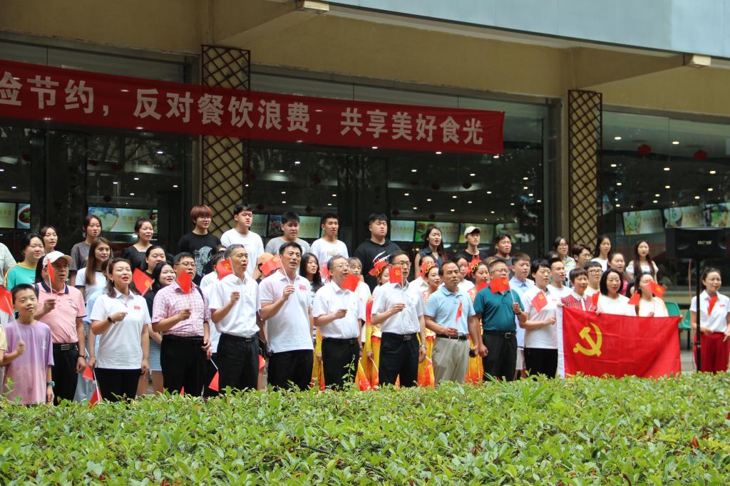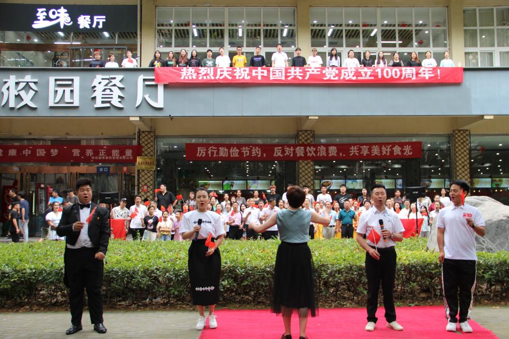為慶祝中國(guó)共產(chǎn)黨成立100周年,響應(yīng)習(xí)近平總書(shū)記在黨的十九大報(bào)告中提出的新時(shí)代堅(jiān)持文化自信號(hào)召,7月1日中午,音樂(lè)系組織師生在雁塔校區(qū)學(xué)生餐廳舉辦“紅歌快閃”活動(dòng),吸引了校園眾多師生觀(guān)看,場(chǎng)面熱烈。音樂(lè)系已連續(xù)四年組織“紅歌快閃”活動(dòng),唱響主旋律,凝聚精氣神,謳歌黨的光輝歷史和豐功偉績(jī),充分展現(xiàn)師生良好的精神風(fēng)貌。校黨委副書(shū)記雷西合,組織部、宣傳部、音樂(lè)系、高教研究與評(píng)估中心、材料科學(xué)與工程學(xué)院、馬克思主義學(xué)院、經(jīng)濟(jì)管理學(xué)院、外國(guó)語(yǔ)學(xué)院等單位負(fù)責(zé)人,以及100余名音樂(lè)系師生參加了本次“紅歌快閃”活動(dòng)。本次活動(dòng)由音樂(lè)系黨總支策劃,何云老師排練指導(dǎo)。
