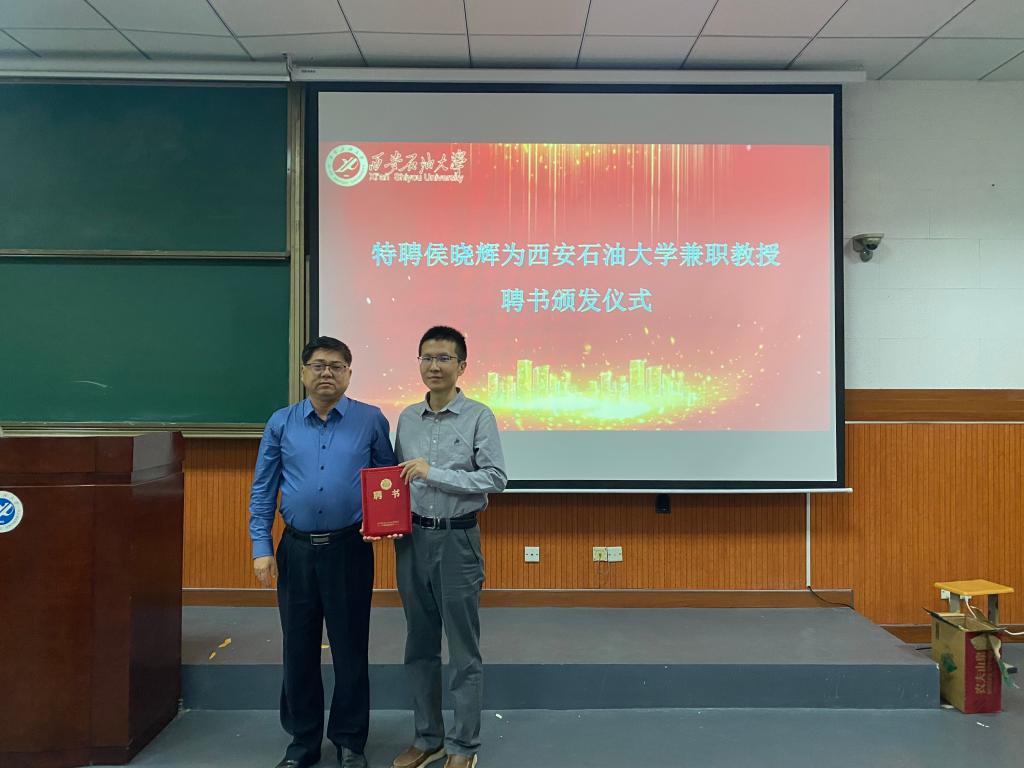 樊曉民總會計(jì)師簡要介紹了西安石油大學(xué)和經(jīng)濟(jì)管理學(xué)院的發(fā)展現(xiàn)狀。他談到,侯曉輝教授能加入我校經(jīng)濟(jì)管理學(xué)院做兼職教授是對學(xué)校尤其是經(jīng)濟(jì)管理學(xué)院的積極支持,將大幅提升學(xué)校管理類學(xué)科建設(shè)水平,增強(qiáng)人才培養(yǎng)質(zhì)量。樊曉民總會計(jì)師為侯曉輝教授頒發(fā)了兼職教授聘書。